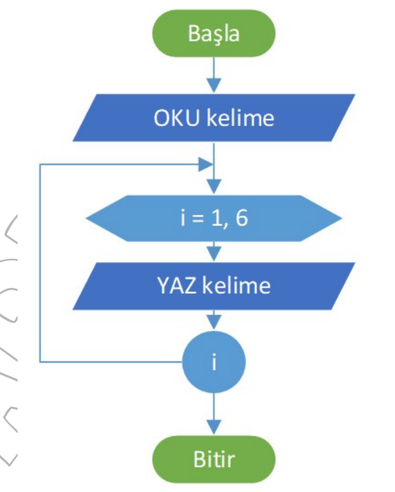 • Loop-While: Koşul sağlandığı sürece döngü devam eder. Kullanıcıdan veri girişi bekleyen döngülerde, döngü içinde mutlaka “OKU” komutu bulunmalıdır ki döngü sonsuza girmesin.